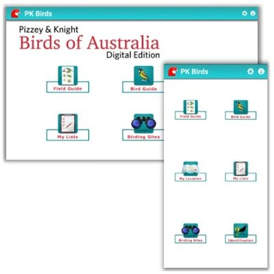 Pizzey & Knight Birds of Australia Digital Edition combines multimedia data on over 900 Australian bird species, with eight interactive modules that include a Field Guide with pages like the book, a Bird Guide with bird list and bird pages, Identification keys for listing likely species, Similar Birds for comparing selected species, My Location for bird lists and My Lists to keep your own lists, Birding Sites for where to go birding, and descriptions of birding Habitats. The multimedia data includes • over 250 field-guide pages • over 900 individual bird pages • over 2500 illustrations, 4000 photos, and 700 bird sounds • colour-coded distribution maps with seasonal status bar and endemic and red data species indicated • new rare bird maps.